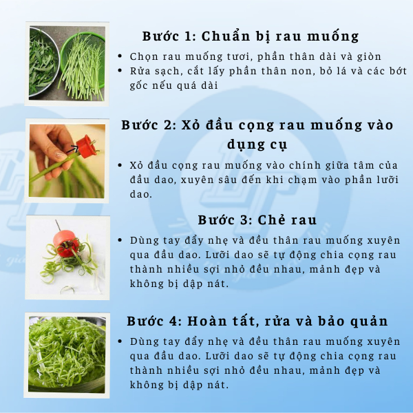 Vậy bí quyết là gì? Câu trả lời nằm ở một dụng cụ nhỏ nhưng cực kỳ tiện lợi: DAO CHẺ RAU MUỐNG.